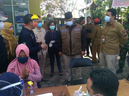 (Edi Damansyah saat meninjau rapid test pedagang Pasar)