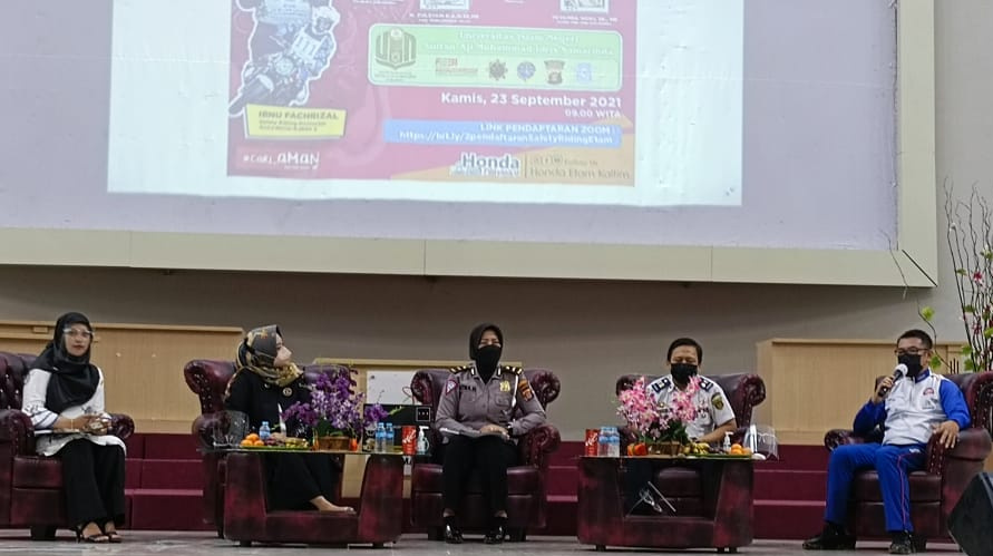 Salah satu yang menjadi sarana untuk terus melakukan edukasi keselamatan berkendara adalah media sosial dan platform. Kamis (23/9/2021) lalu, Astra Motor Kaltim 2 berkesempatan menggandeng Satlantas Polresta Samarinda Iptu HM Sarjo Wakasat Lantas Polresta Samarinda, Psikolog Ayunda Ramadhani M.PSI. , dan Dinas perhubungan kota Samarinda KASI Keselamatan Jalan Dinas perhubungan kota Samarinda M. Zulsyam K.A.H.SE.ME untuk memberikan edukasi kepada mahasiswa Fakultas Ekonomi & Bisnis Islam Universitas Islam Negeri Sultan Aji Muhammad Idris Samarinda dengan tema yang bertajuk "Generasi #Cari_Aman Untuk Indonesia, webinar ini dipandu oleh Yovanda Noni, SE., ME. Dosen FEBI UINSI Samarinda selaku moderator.