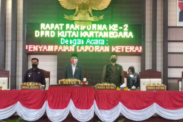 TENGGARONG, (KutaiRaya.com) DPRD Kabupaten Kutai Kartanegara menggelar Rapat Paripurna ke 2 Masa Sidang II DPRD Kukar dengan agenda Penyampaian Laporan Keterangan Pertanggung jawaban (LKPJ) Bupati Kutai Kartanegara Tahun Anggaran 2021. Bertempat di Ruang Sidang Utama DPRD Kukar, Kamis (1/4/2022).