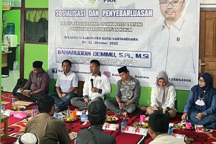 Kali ini politisi PAN tersebut mensosialisasikan Perda Kaltim Nomor 05 Tahun 2019 tentang Penyelenggaraan Bantuan Hukum, berlangsung di Desa Separi, Kecamatan Tenggarong Seberang, Kabupaten Kutai Kartanegara, Minggu (30/10/2022).