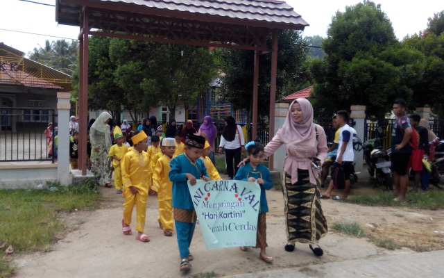 Memperingati hari lahirnya Raden Adjeng Kartini ke 138 tahun 2017 ini, Kelompok Bermain (KB). Syafirah Kelurahan Bukit Biru Kecamatan Tenggarong mengadakan Karnaval.
