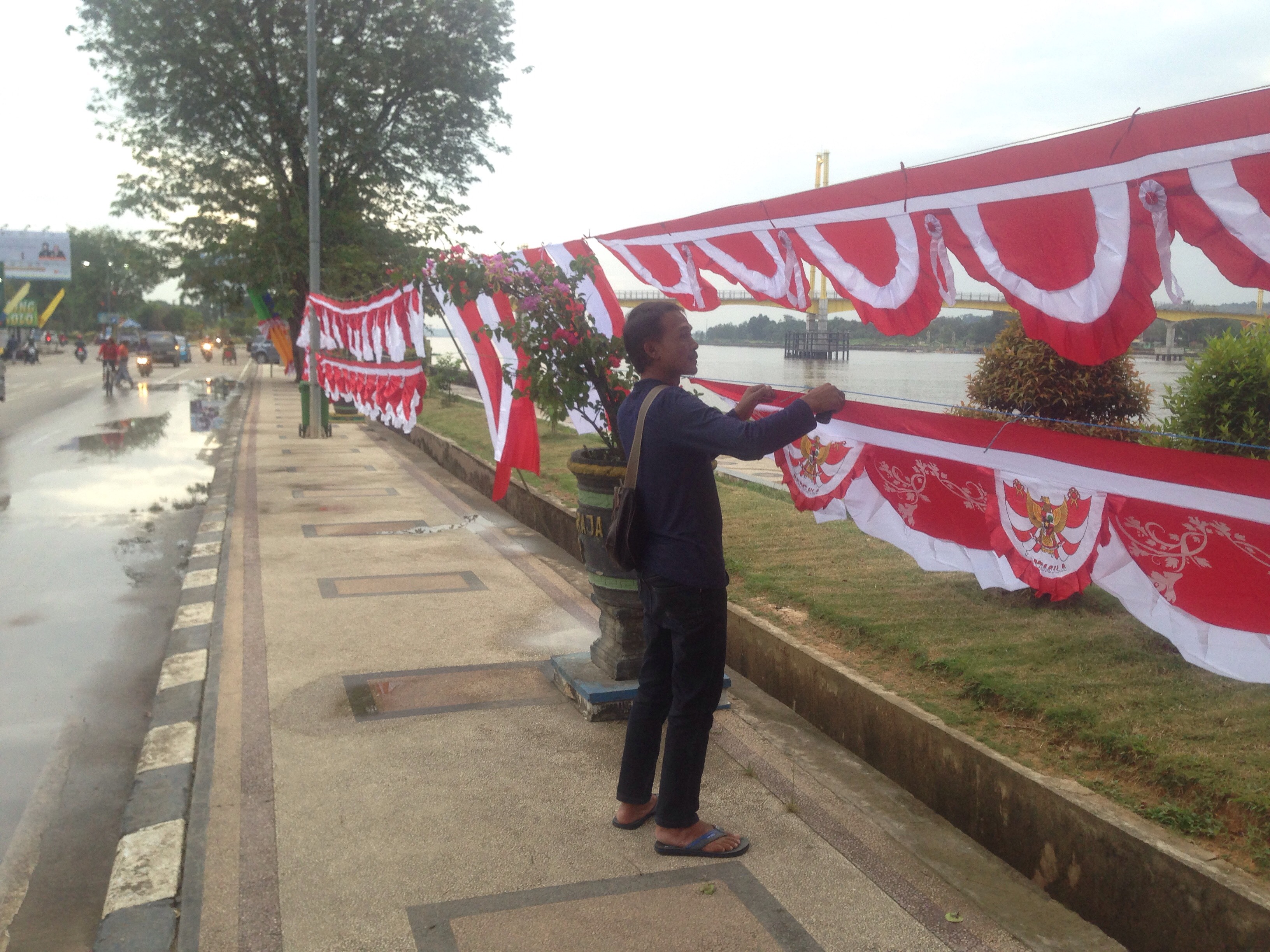Seperti yang dialami oleh Samarian, pedagang asal Bandung ini mengaku sengaja datang ke Tenggarong untuk berjualan bendera dan umbul umbul aneka warna.
