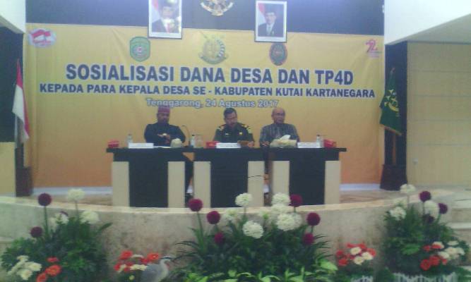 193 kepala desa se-Kutai Kartanegara Kamis (24/8/2017) lalu mengikuti sosialisasi penggunaan dana desa (DD). ratusan Kades diberikan pemahaman oleh tim Pengawal , Pengaman Pemerintah dan Pembanguan Daerah ( TP4D) dengan materi yaitu penggunaan dana desa .