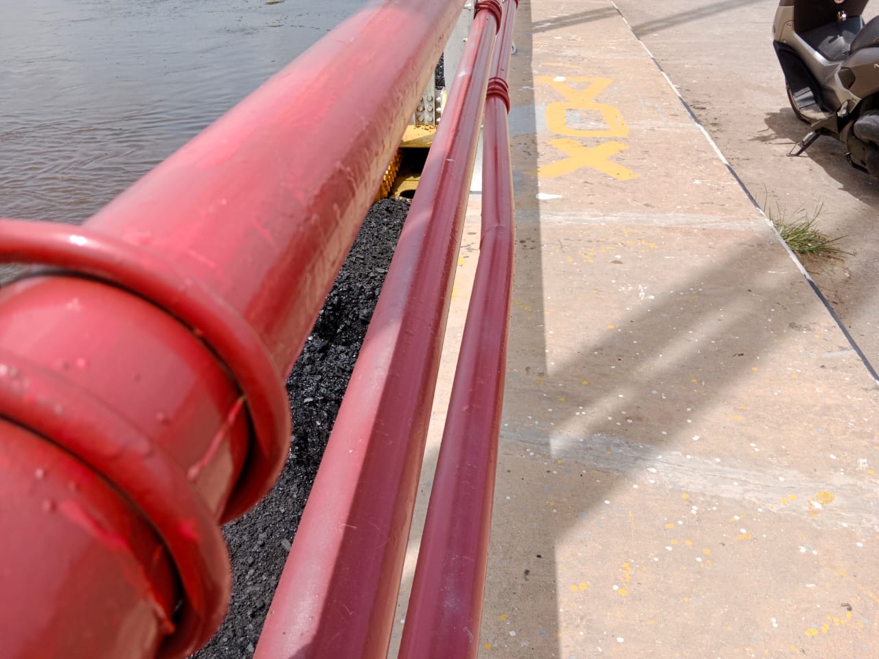 (Besi jembatan bengkok akibat ditabrak tumpukan batu bara.Foto:ist)