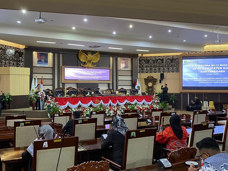TENGGARONG, (KutaiRaya.com) Dewan Perwakilan Rakyat Daerah (DPRD) Kabupaten Kutai Kartanegara (Kukar) menggelar Rapat Paripurna Ke-12 masa sidang I pada Jumat (11/10/24) dalam agenda pengumuman usulan pimpinan DPRD definitif periode 2024-2029.