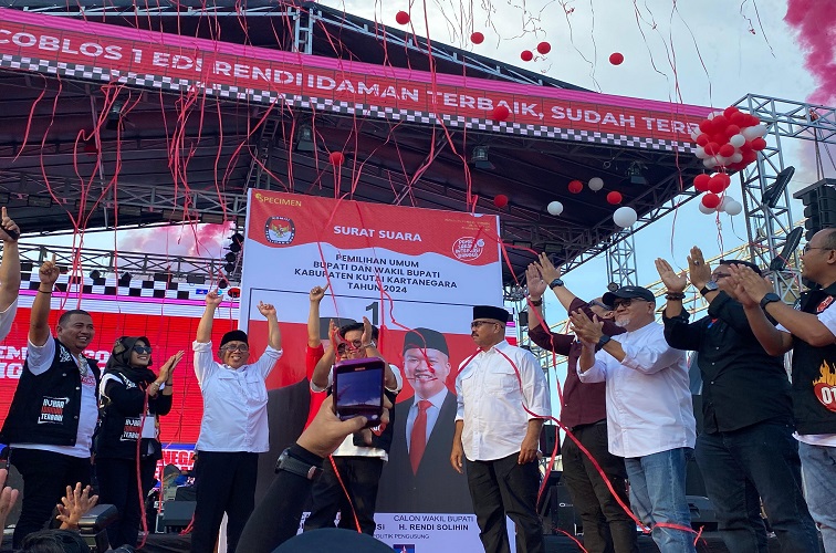 "Kami mengucapkan terima kasih kepada seluruh masyarakat Kabupaten Kutai Kartanegara, dan terima kasih kepada para pendukung, relawan, karena kerja keras rekawanlah Edi-Rendi dari hasil survei lapangan masyarakat memilih di Kukar 64 persen sudah mantap memilih Edi-Rendi pada tanggal 27 November 2024 yang akan datang." ungkap Edi-Rendi.