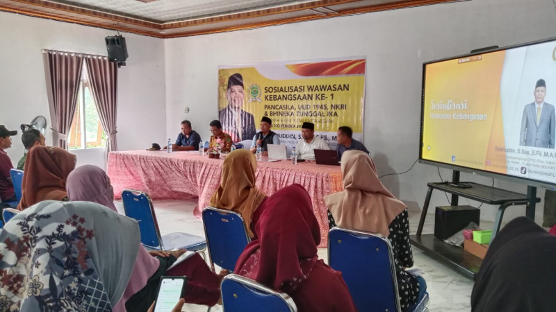 KUKAR (KutaiRaya.com) - Sosialisasi Wawasan Kebangsaan (Soswabang) Ke 1 anggota DPRD Provinsi Kaltim Salehuddin, S.Sos, S.Fil, M.AP, dilaksanakan di Desa Suka Bumi, Kecamatan Kota Bangun Darat, Kutai Kartanegara, Minggu (17/11/2024).