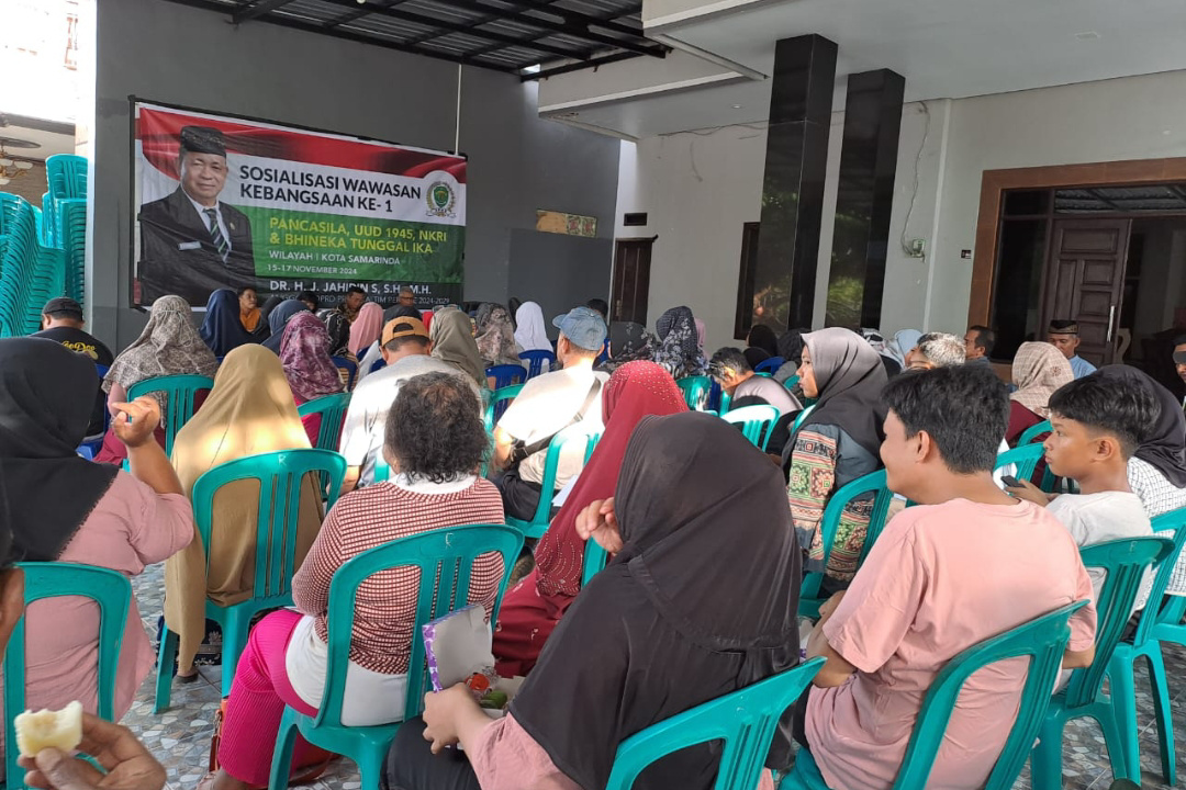 SAMARINDA (KutaiRaya.com) - Anggota DPRD provinsi Kaltim Jahidin melaksanakan sosialisasi wawasan kebangsaan (Soswabang) ke 1 di Jalan Elang Kelurahan Sungai Pinang Dalam Samarinda, Sabtu (16/11/2024).