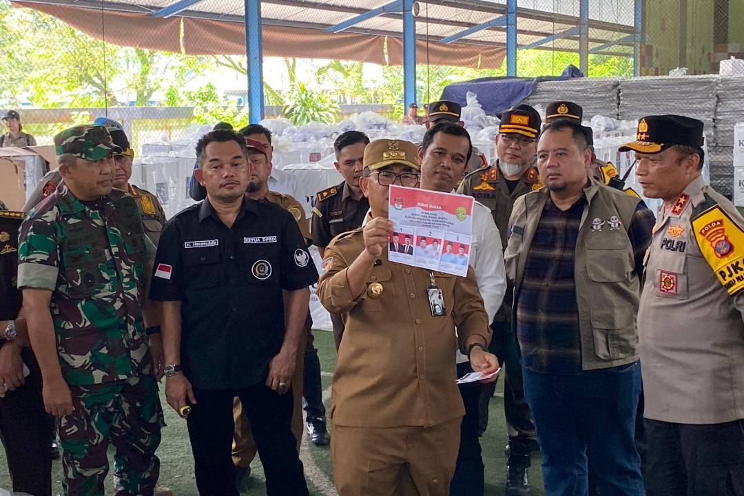 Rombongan yang terdiri dari Ketua DPRD Kaltim Hasanuddin Mas’ud, Kapolda Kaltim Irjen Pol Nanang Avian, Pj Gubernur Kaltim Akmal Malik, Ketua KPU Kaltim Fahmi Idris, Ketua Bawaslu Kaltim Hari Dermanto, disambut Pjs Bupati Kukar dan jajaran Forkopimda Kukar mengecek Gudang KPU Kabupaten Kutai Kartanegara.