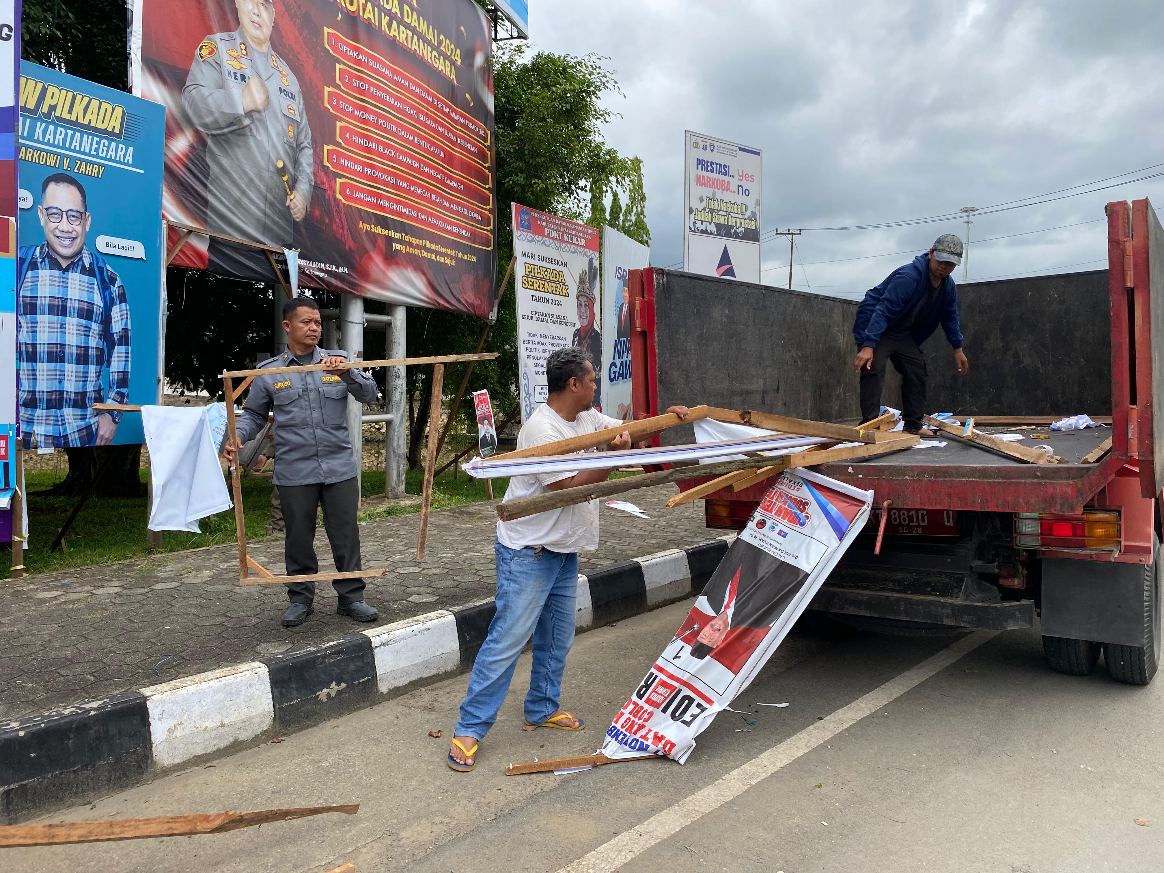 "Penertiban dilakukan secara serentak pada tanggal 24, 25, dan 26, untuk memastikan bahwa semua alat peraga kampanye telah diturunkan sebelum hari pemungutan suara." imbuhnya