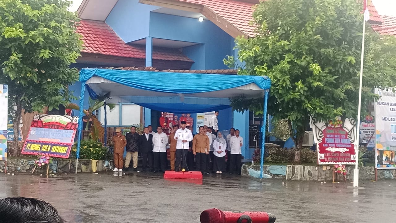 TENGGARONG (KutaiRaya.com) - Seluruh jajaran dan karyawan Perumda Tirta Mahakam Kukar melaksanakan upacara dalam rangka puncak peringatan HUT Ke-33 Perumda Tirta Mahakam Kukar, Senin (16/12/2024). Diwarnai guyuran hujan, upacara yang dipimpin Bupati Kukar Edi Damansyah di halaman kantor pusat Perumda Tirta Mahakam Kukar tetap dilaksanakan dan berlangsung khidmat.