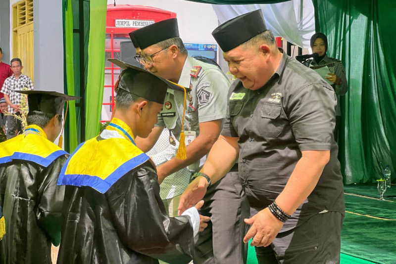 TENGGARONG (KutaiRaya.com) - Sebanyak 50 orang Warga Binaan Pemasyarakatan (WBP) Lapas Kelas II A Tenggarong yang mengikuti program santri di Pesantren Taubatan Nasuha mengikuti prosesi wisuda, di Lapangan olahraga Lembaga Pemasyarakatan (Lapas) Kelas IIA Tenggarong, Sabtu (18/01/2025).