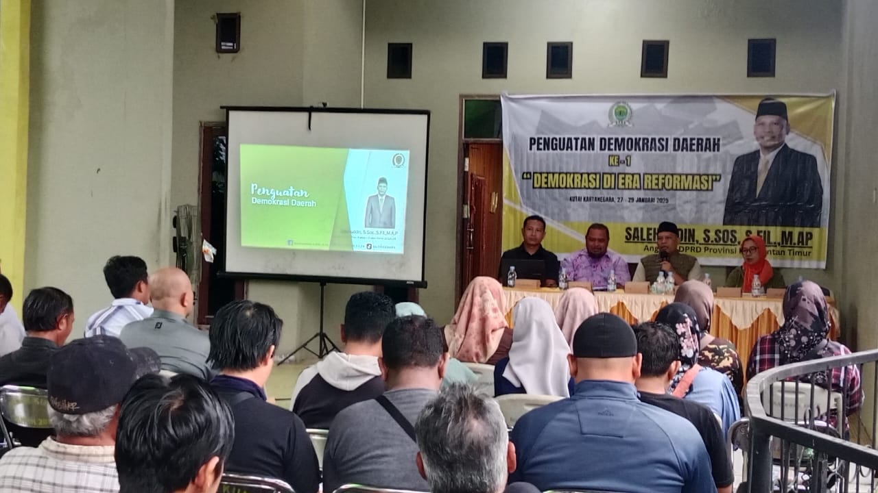 TENGGARONG (KutaiRaya.com) - Sekretaris Komisi I DPRD Provinsi Kaltim Salehuddin, S.Sos, S.Fil, M.AP melaksanakan Penguatan Demokrasi Daerah Ke I DPRD Provinsi Kaltim dengan tajuk "Demokrasi Di Era Reformasi", di Kelurahan Mamgkurawang Kecamatan Tenggarong, Kukar, Selasa (28/01/2025).