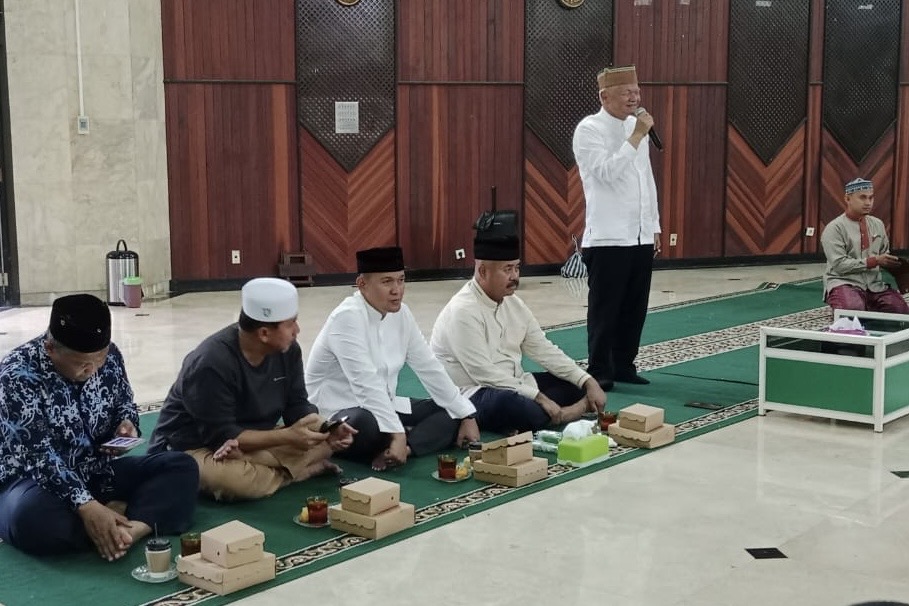 Dikesempatan tersebut, Ketua Bapel Masjid Agung Muhammad Bisyron mengisi Kultum menjelang berbuka puasa dihadiri sekitar 300 jama