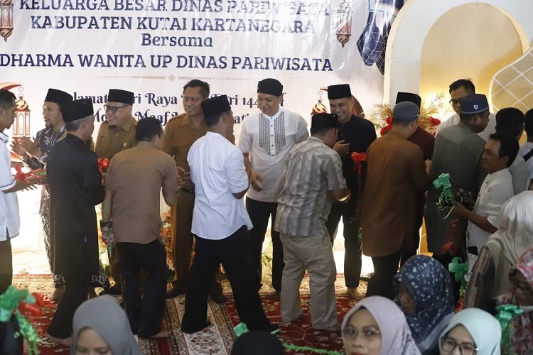TENGGARONG, (KutaiRaya.com) Suasana penuh kehangatan dan kebersamaan tampak menyelimuti Gedung Planetarium Jagad Raya Tenggarong pada Senin pagi (14/4/2025). Jajaran Dinas Pariwisata (Dispar) Kabupaten Kutai Kartanegara (Kukar) bersama Dharma Wanita Unit Pelaksana Dispar menggelar kegiatan Khatam Qur’an dan Halalbihalal dalam rangka menyambut Hari Raya Idul Fitri 1446 Hijriah.
