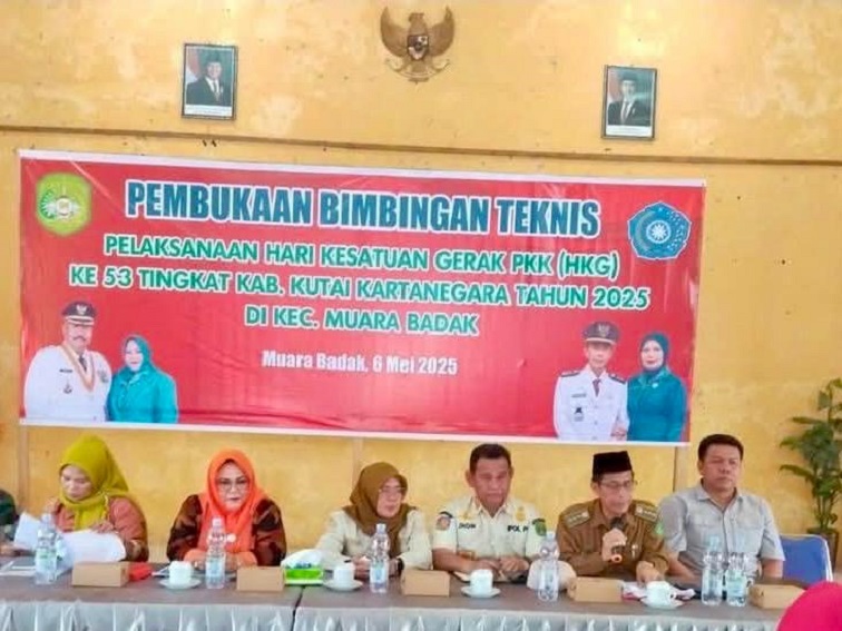 TENGGARONG, (KutaiRaya.com) Kegiatan Bimbingan Teknis (Bimtek) dalam rangka menyambut peringatan Hari Kesatuan Gerak (HKG) PKK ke-53 Tahun 2025 tingkat Kabupaten Kutai Kartanegara dimulai. Kegiatan ini berlangsung Selasa (6/5/2025), di Balai Pertemuan Umum (BPU) Kecamatan Muara Badak.