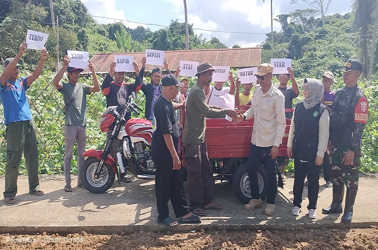 TENGGARONG, (KutaiRaya.com): Petani sayur Kelurahan Maluhu yang tergabung dalam Perkumpulan Petani Sayur Swadaya Mandiri (PPSSM) Maluhu, mendapatkan bantuan satu unit sepeda motor Viar dari pribadi Bupati Kukar, Aulia Rahman Basri, Minggu (13/7/2025) siang.