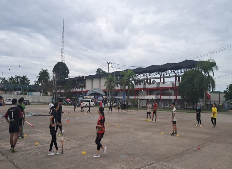 Suasana latihan atlet Hockey di lapangan parkir Stadion Rondong Demang Tenggarong.(Foto: Achmad Nizar/Kutairaya)