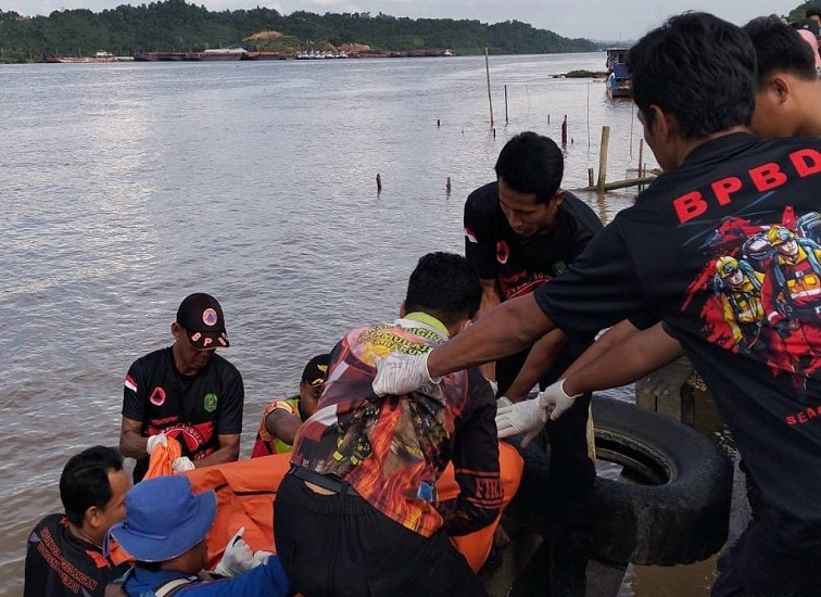 Evakuasi jasad pria tanpa identitas di perairan Sungai Mahakam Desa Sepakat.(istimewa)