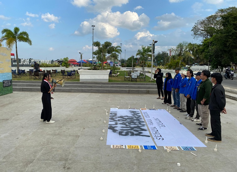 Aksi suara mahakam menyikapi peristiwa pemukulan warga Jonggon.(Achmad Rizki/Kutairaya)