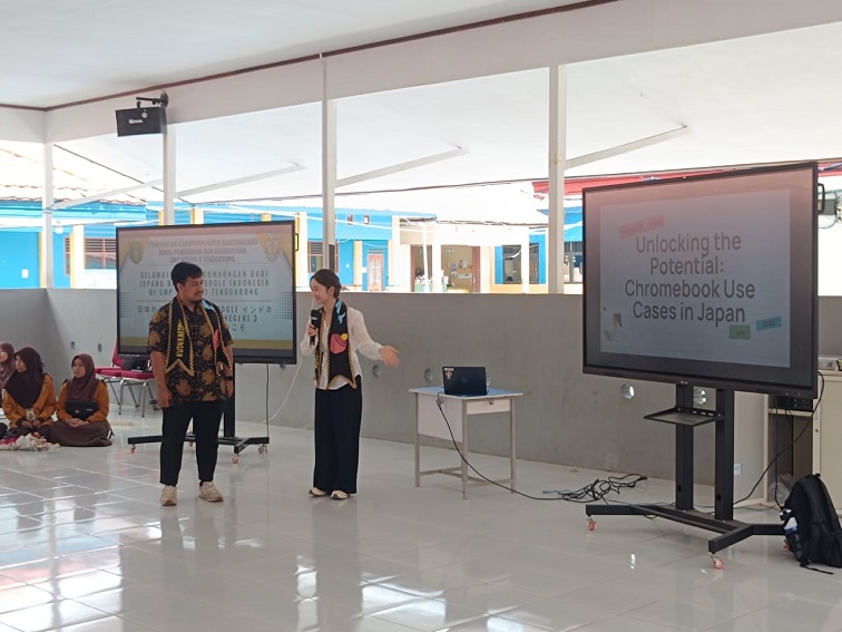 TENGGARONG, (KutaiRaya.com): Sekolah Menengah Pertama Negeri (SMPN) 3 Tenggarong menjadi salah satu sekolah di Kukar yang dikunjungi delegasi dari Jepang bersama tim Goggle Indonesia untuk mengetahui implementasi transformasi pendidikan digital disekolah.