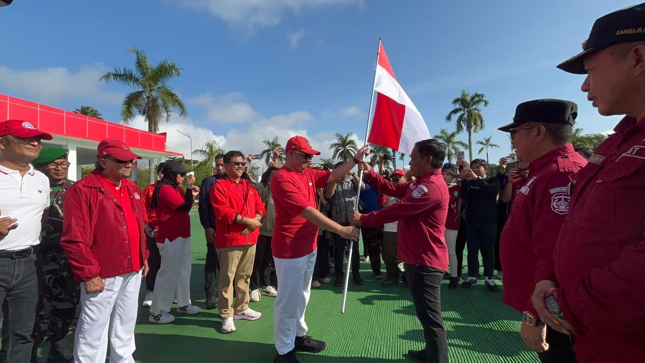 Pembagian secara simbolis Bendera oleh Bupati Aulia Rahman Basri di Lapangan Upacara Pemkab Kukar.(Foto: Andri Wahyudi/KutaiRaya)