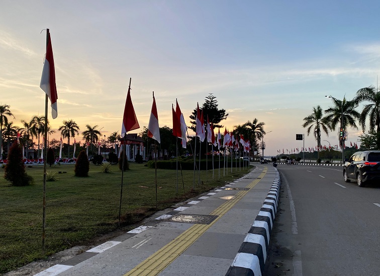 Pemasangan bendera merah putih dipinggir jalan Tenggarong.(Achmad Nizar/Kutairaya)