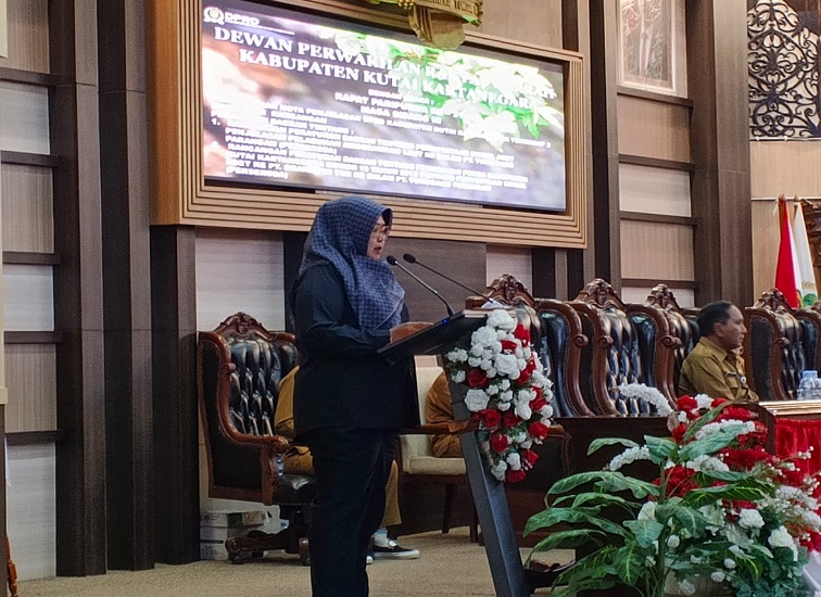 Anggota Badan Pembentukan Peraturan Daerah (Bapemperda) DPRD Kukar, Fathlon Nisa Membacakan Nota Penjelasan.(Foto:Indri)