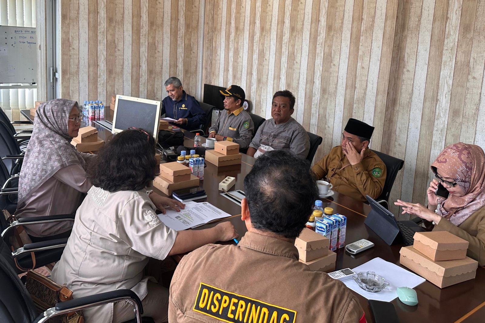 Rapat koordinasi terkait opsi pengurangan, penundaan dan penghapusan retribusi pasar periode 2017-2019, di kantor Disperindag Kukar, Selasa (12/8/2025).(Foto: Achmad Rizki/Kutairaya)
