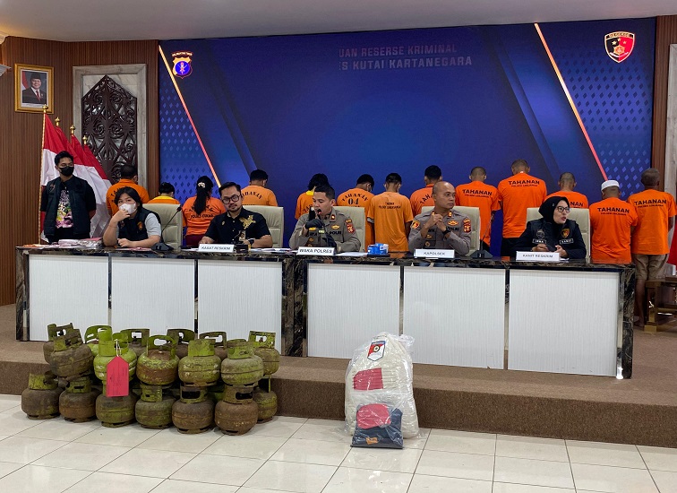 Polres Kukar saat menggelar jumpa pers terkait dengan pengungkapan kasus pencabulan terhadap santri di Ponpes Tenggarong Seberang.(Achmad Rizki/Kutairaya)