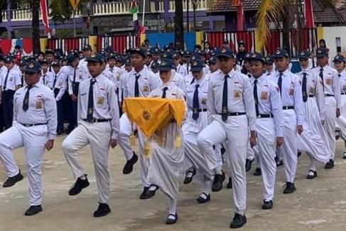 Suasana SMPN 3 Tenggarong lakukan upacara peringatan HUT RI.(Foto:Achmad Nizar/Kutairaya)