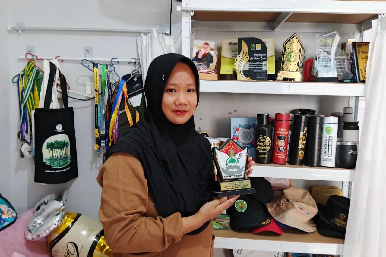 Kiki menuturkan, usahanya XPO Digital Printing yang dimulai suaminya pada 2015 kini berkembang, melayani pesanan dari satuan hingga partai besar. Tantangan utama adalah keterbatasan bahan di Samarinda, sehingga harus mengambil dari Jakarta dan Surabaya.