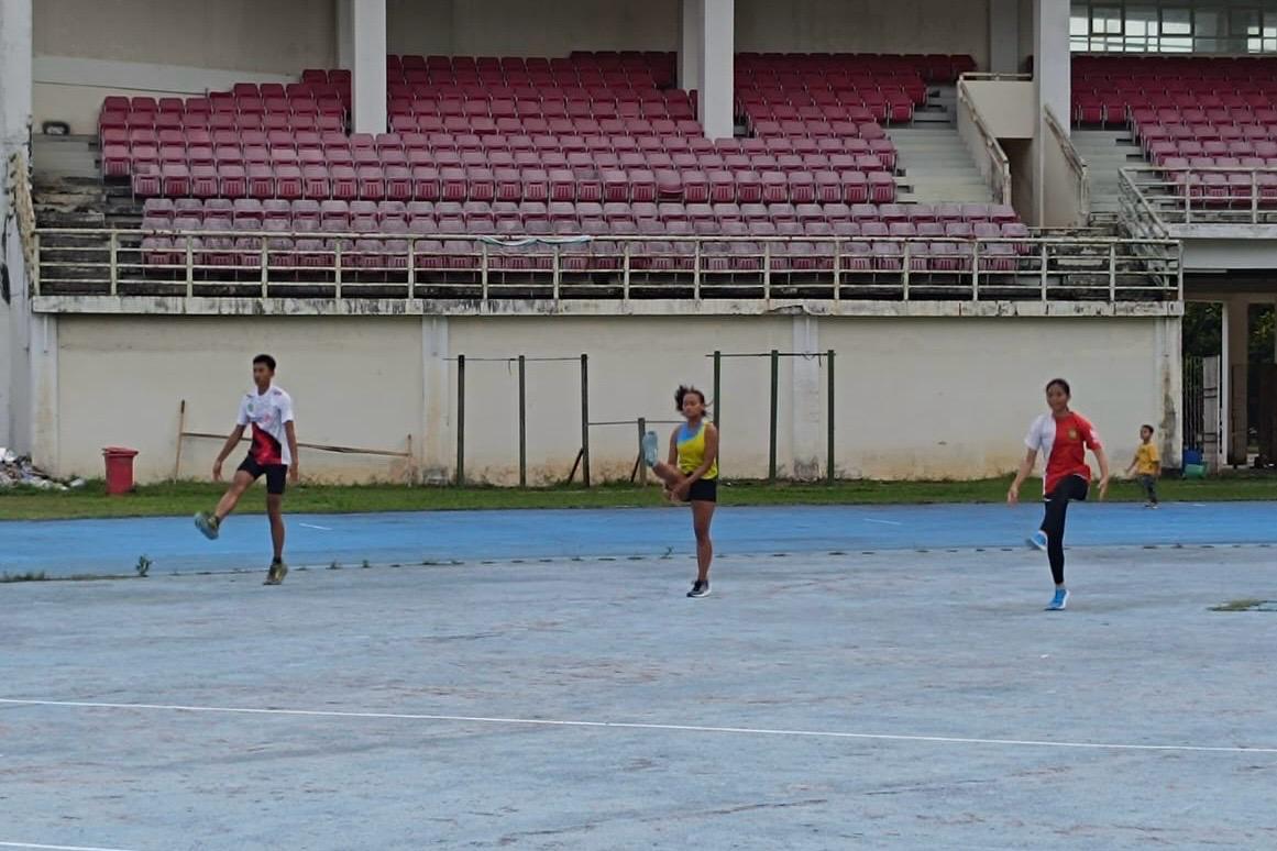 Atlet PASI Kukar saat latihan di Stadion Aji Imbut, Tenggarong Seberang.(Foto:Achmad Nizar/Kutairaya)