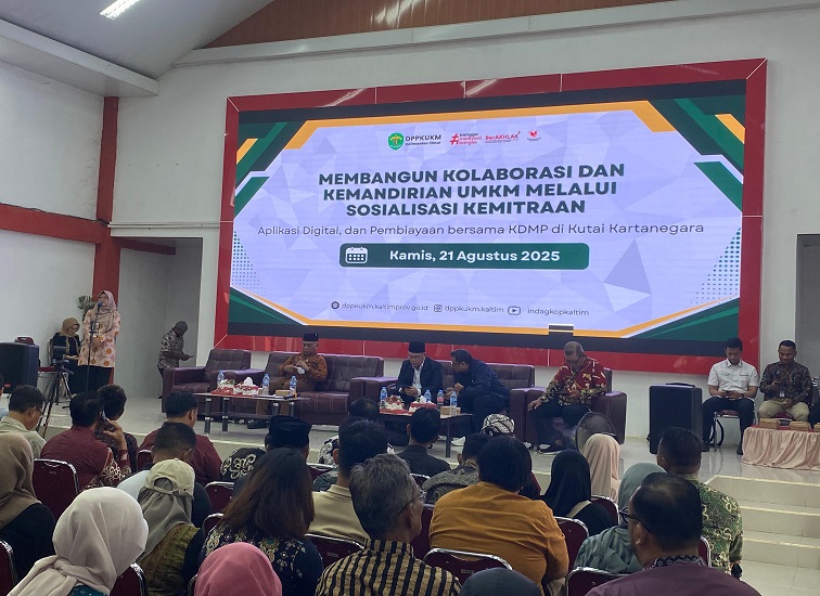 TENGGARONG, (KutaiRaya.com): Dinas Perindustrian, Perdagangan, Koperasi, Usaha Kecil dan Menengah (DPPUKM) Provinsi Kalimantan Timur bersama Dinas Koperasi, Usaha Kecil dan Menengah (DiskopUKM) Kabupaten Kutai Kartanegara (Kukar) melakukan penguatan Koperasi Desa Marah Putih (KDMP), melalui kegiatan sosialisasi kemitraan.