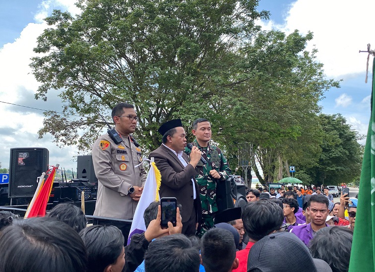 Ketua DPRD Ahmad Yani, saat menemui para pengunjuk rasa didepan kantor DPRD Kukar.
