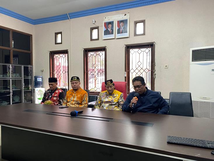 Kepala Disdikbud Kukar Thauhid Afrilian Noor bersama Kesultanan Kukar Ing Martadipura saat jumpa pers , Minggu (7/9/2025).(Devi/Kutairaya)