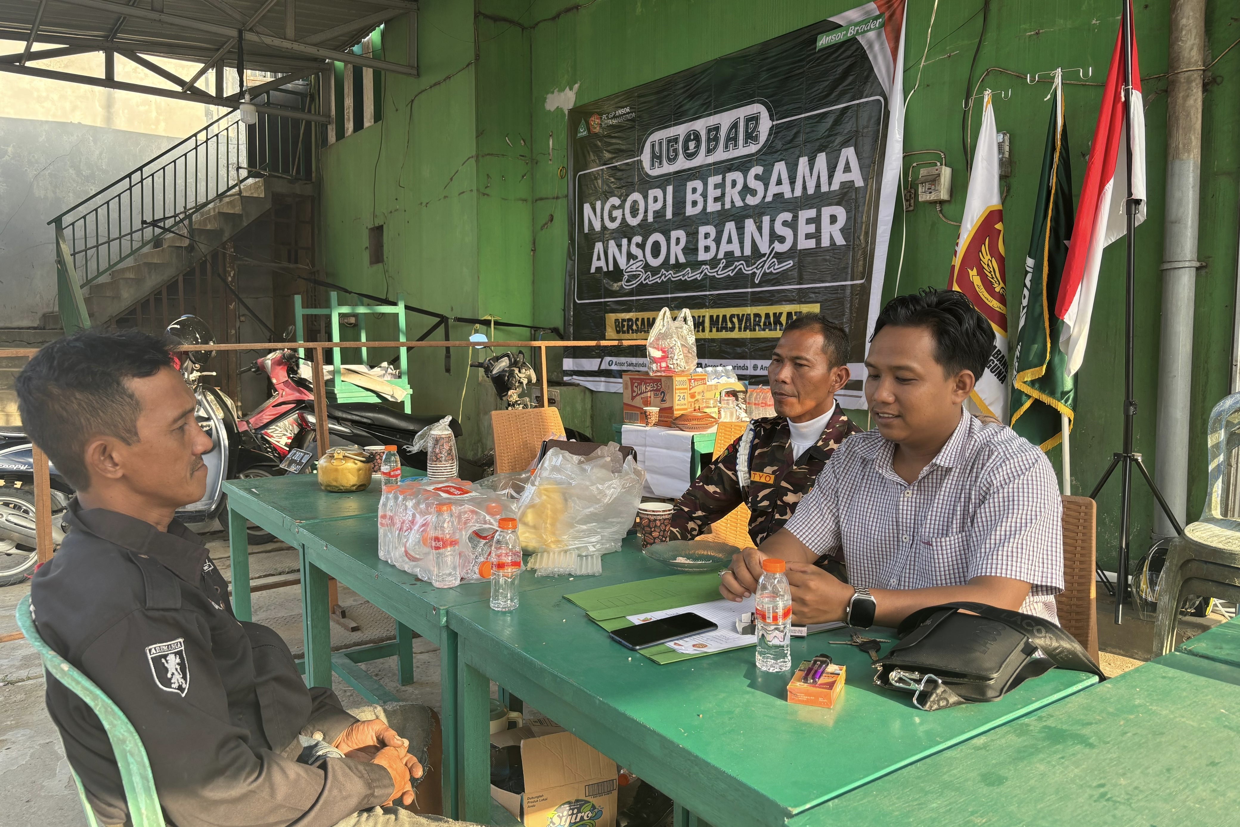 Warga sekitar Kelurahan Samarinda Ulu yang menyambangi Posko Jaga Aspirasi Jaga Indonesia PC PG Anshor Kota Samarinda. Senin (08/09/2025).(Foto:Abi/KutaiRaya)