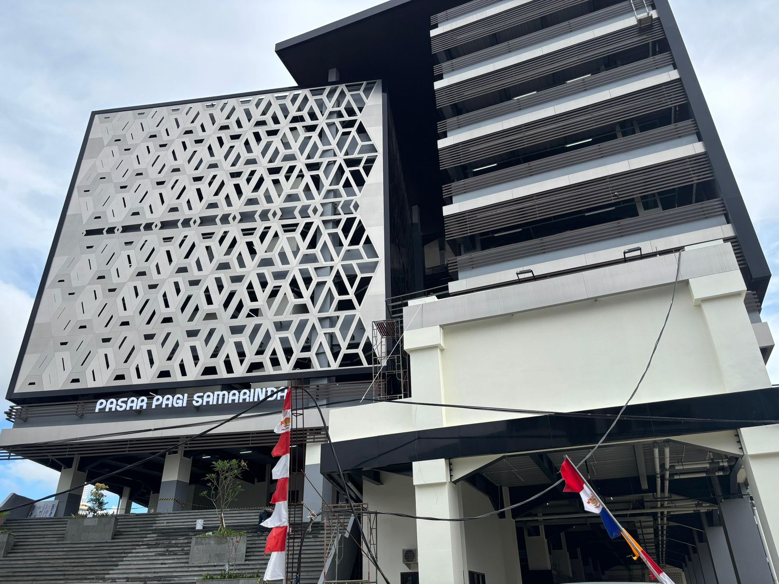Potret gedung baru Pasar Pagi di Kecamatan Samarinda Kota, Samarinda dalam tahap finishing. Kamis (11/09/2025).(Foto: Abi/KutaiRaya)