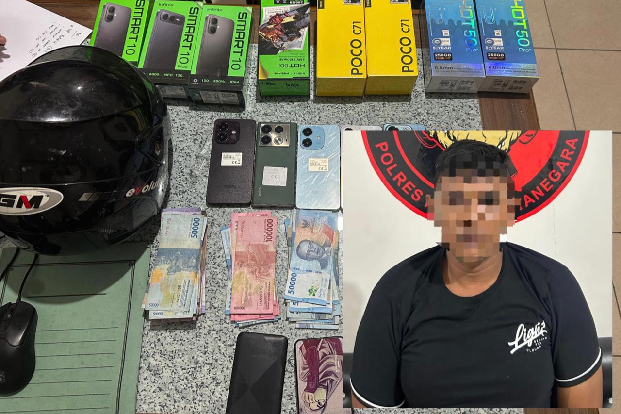 Tiba di lokasi yang dimaksud, polisi berhasil mengamankan pelaku yang berinisial AM. Kepada polisi, pelaku mengaku bahwa telah melakukan pencurian sejumlah HP di Tenggarong.