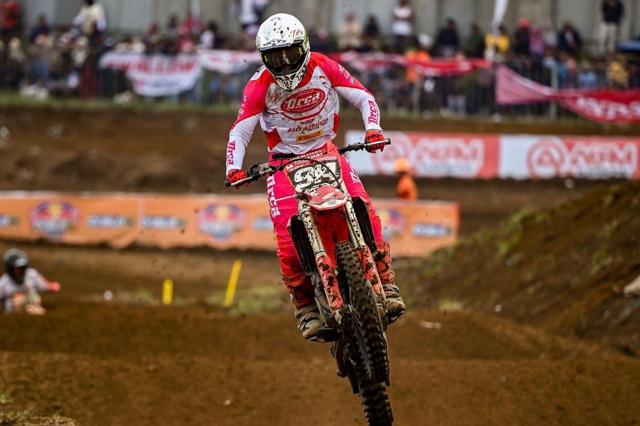 Crosser Astra Honda Racing Team (AHRT) yakni Arsenio Algifarioptimis pertahankan tren positif pada seri keenam Kejurnas Motocross Indonesia 2025 kelas MX2 di Sirkuit Wanko Mijen, Semarang, pada 13-14 September 2025.(Foto:AHRT)