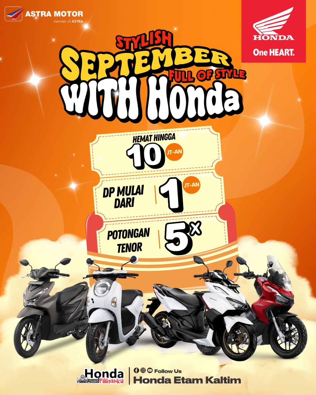 Yehezkiel Felix selaku Marketing Manager Astra Motor Kaltim 2 mengungkapkan, di bulan September banyak promo menarik bagi pelanggan yang membeli unit motor Honda