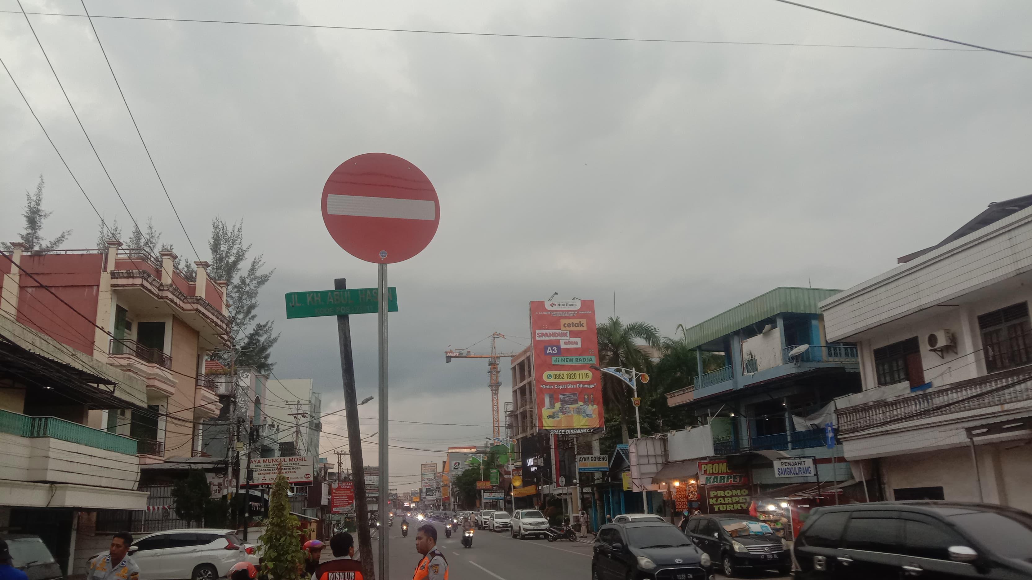 Penerapan lalu lintas satu arah dari arah perempatan RSHD ke Jalan Abul Hasan, Rabu (24/09/2025).(Foto:Abi/KutaiRaya)