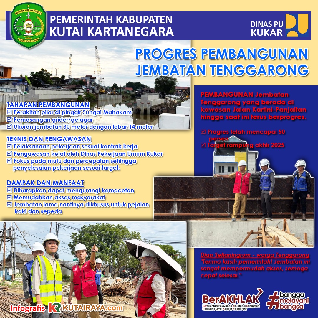 PEMBANGUNAN Jembatan Tenggarong yang berada dikawasan Jalan Kartini-Panjaitan hingga saat ini terus berprogres.