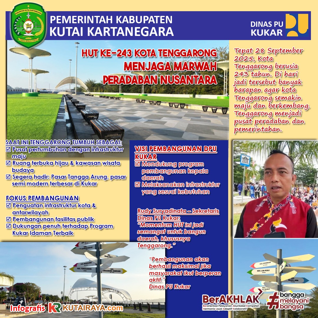 Tepat 28 September 2025, Kota Tenggarong berusia 243 tahun. Di hari jadi tersebut banyak harapan agar kota Tenggarong semakin maju dan berkembang. Tenggarong menjadi pusat peradaban dan pemerintahan.