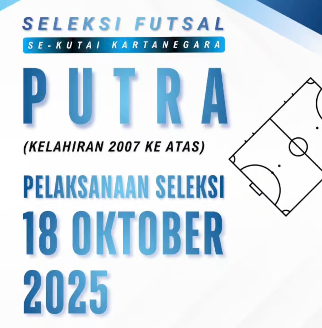 TENGGARONG, (Kutairaya.com): Sebagai langkah awal usai pelantikan kepengurusan baru, Asosiasi Futsal Kabupaten (Afkab) Kutai Kartanegara (Kukar) resmi membuka seleksi pemain futsal putra dan putri.