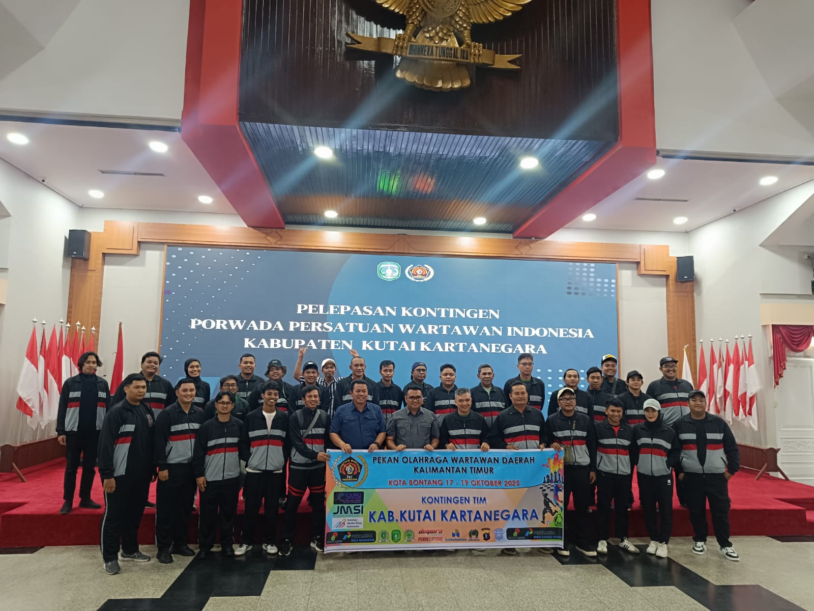 TENGGARONG, (KutaiRaya.com) : Pelepasan Kontingen Persatuan Wartawan Indonesia (PWI) Kukar dalam mengikuti Pekan Olahraga Wartawan Daerah (Porwada) Kalimantan Timur yang berlangsung di Bontang, pada 17-19 Oktober 2025.