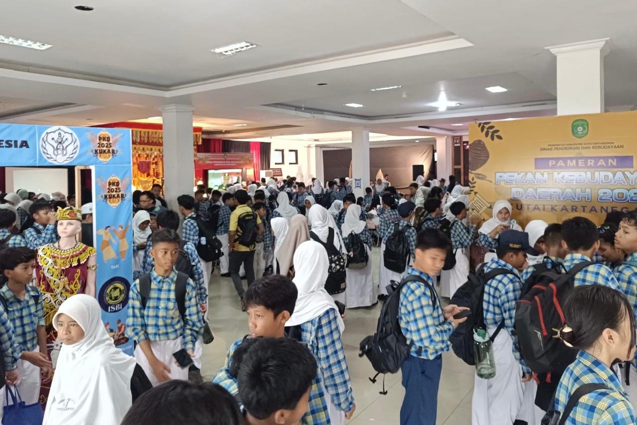 Para siswa siswi SMP antusias menyaksikan karya yang ada di Pameran Budaya. (Foto: Achmad Nizar/Kutairaya)