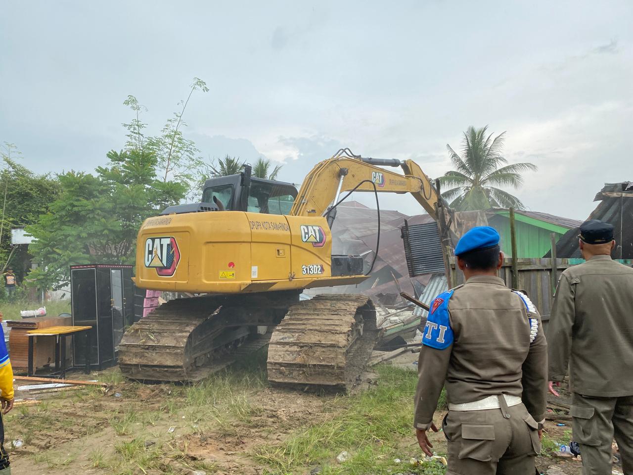 Proses penertiban rumah di atas lahan Pemkot Samarinda di kawasan Perumdam Tirta Kencana, Samarinda Seberang, Selasa (21/10/2025).(Foto:Abi/KutaiRaya)