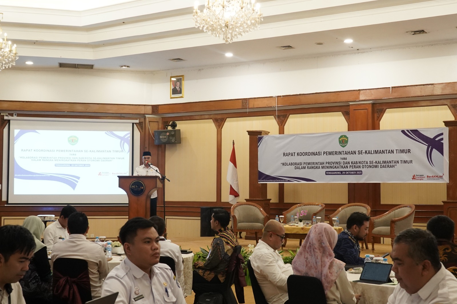 Hal ini diungkapkan Asisten I Setkab Kukar, Akhmad Taufik Hidayat mewakili Bupati Kukar Aulia Rahman Basri, dalam Rapat Koordinasi Pemerintahan Se-Kalimantan Timur T.A 2025 Kolaborasi Pemerintah Provinsi dan Kab/Kota Se-Kalimantan Timur dalam rangka meningkatkan Peran Otonomi Daerah, di Hotel Grand Elty Singgasana Tenggarong, Rabu (29/10/2025).