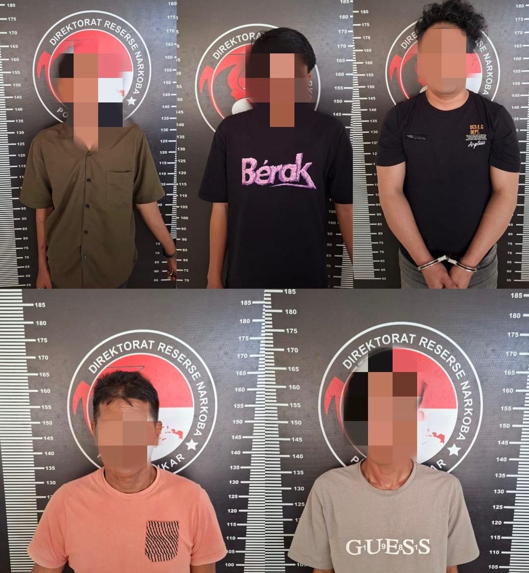 Kelima pelaku yang sudah diamankan oleh Satresnarkoba Polres Kukar.(Dok:Polres Kukar)
